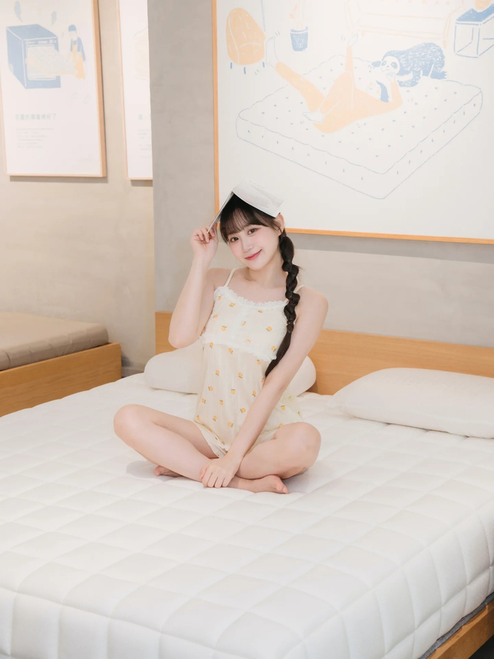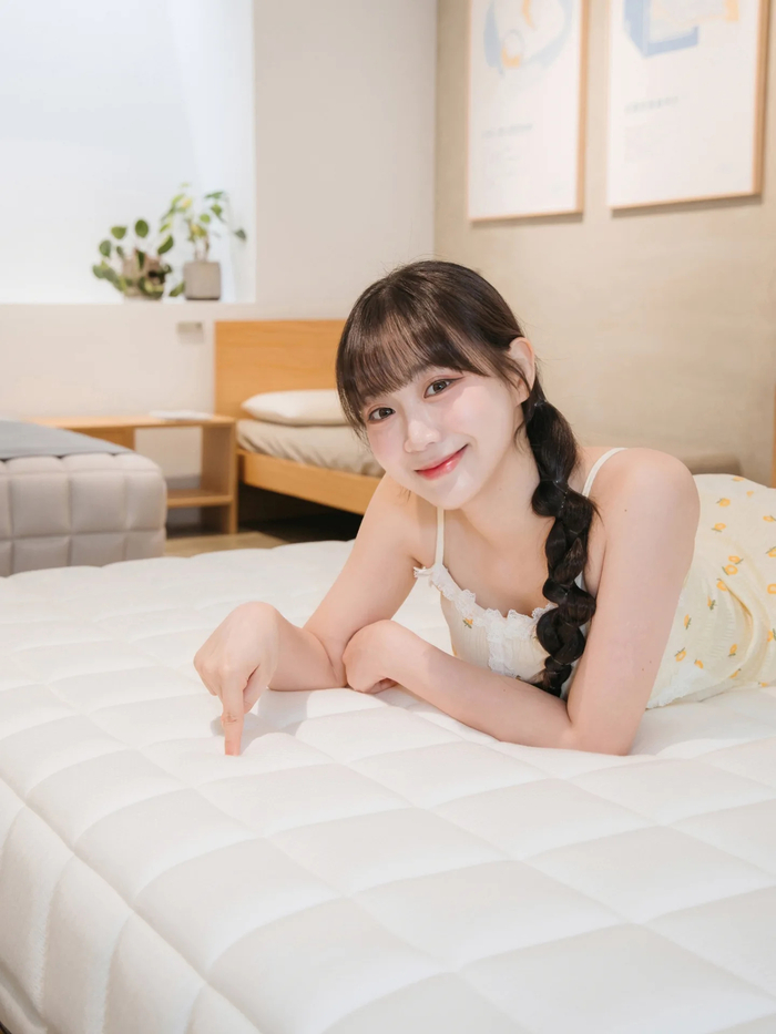 특히, 긴 머리를 한 쪽으로 땋아 내린 헤어스타일과 부드러운 미소는 ‘침대 위 요정’ 같은 분위기를 자아낸다. 그녀는 포근한 흰색 베개를 끌어안거나, 침대에 누워 환하게 웃는 등 다양한 포즈를 취하며 편안하고 사랑스러운 일상의 모습을 보여줬다. 또한, 손가락으로 매트리스를 가리키거나 책을 머리 위에 올리는 장난기 가득한 모습도 눈길을 끈다.